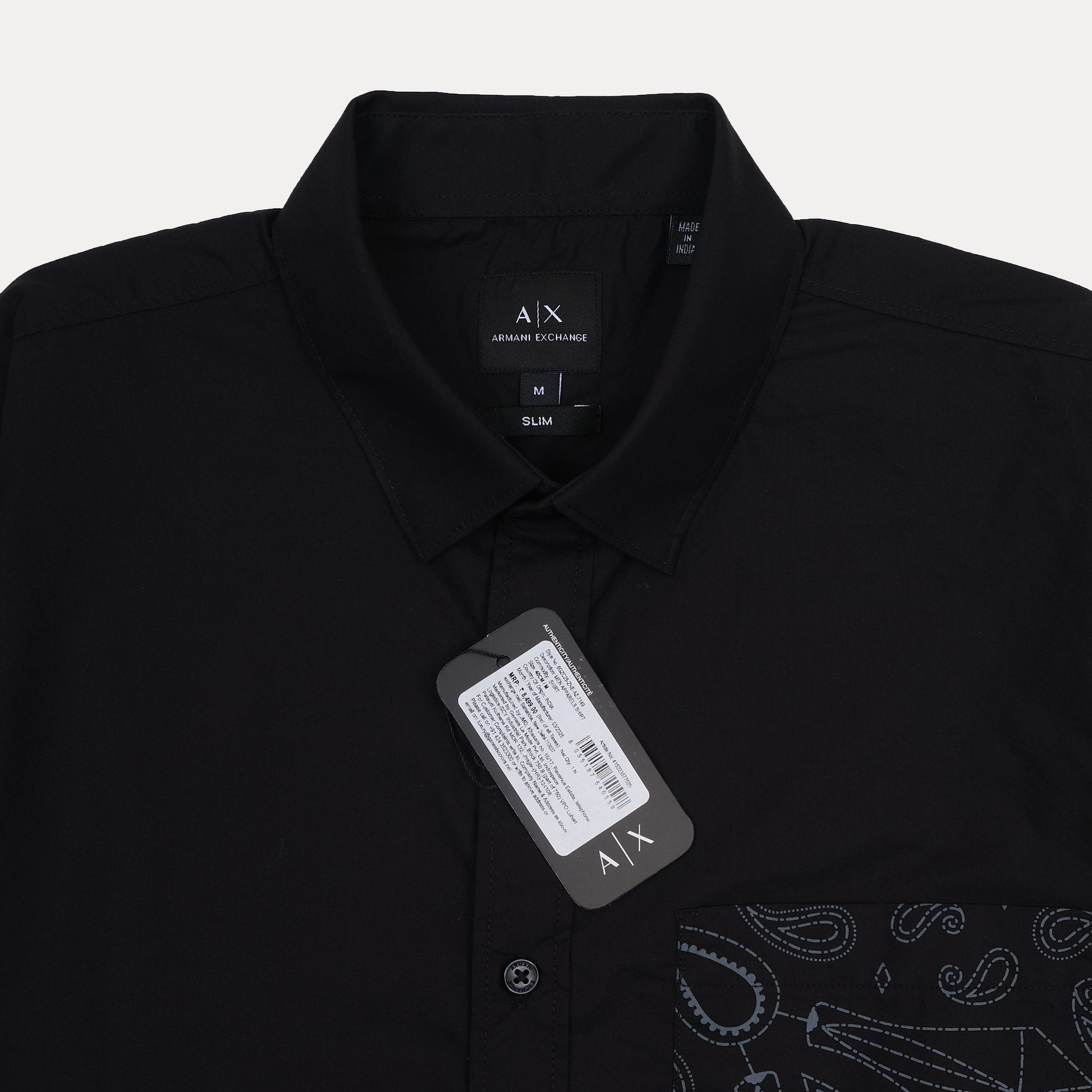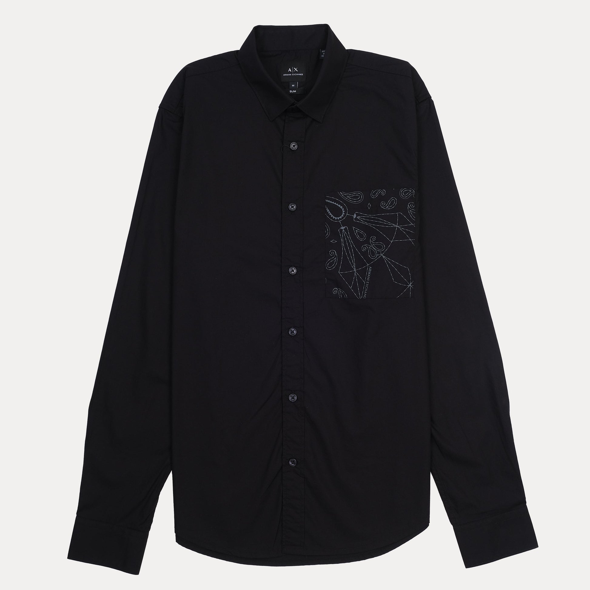 A|X Armani Exchange Slim Fit Black Button-Up Shirt with Contrast Pocket