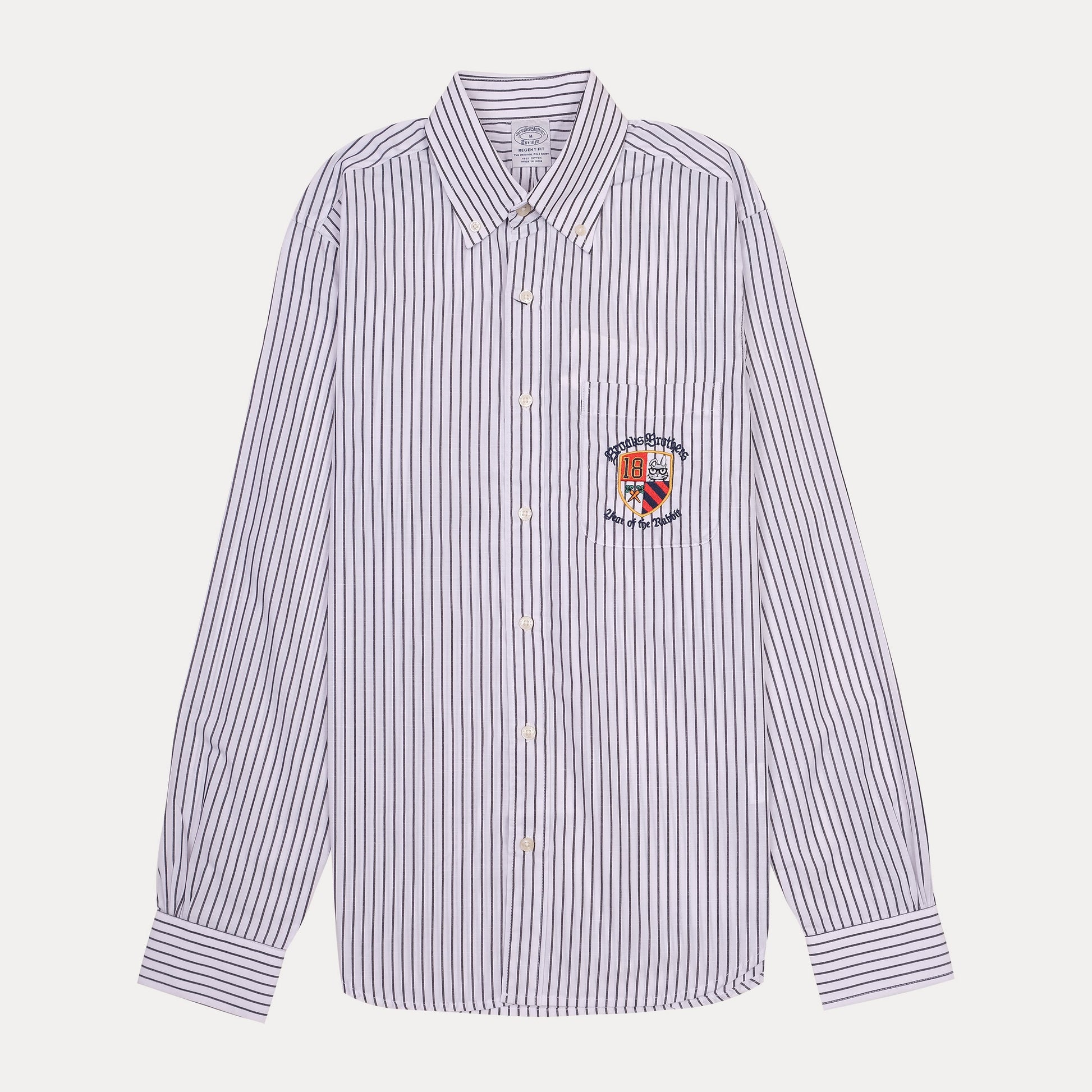 Brooks Brothers Striped Button-Up Shirt with Embroidered Crest
