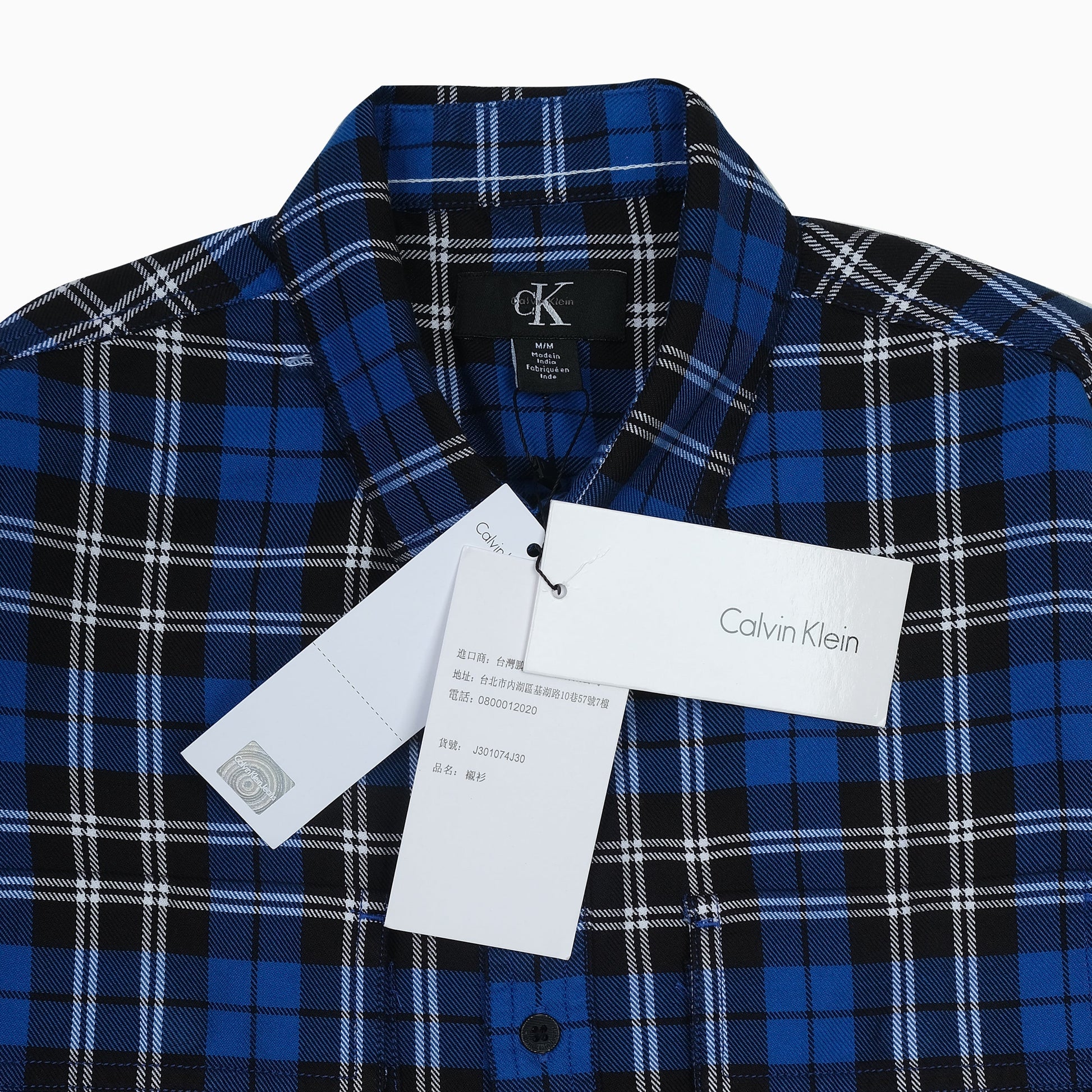 Calvin Klein Men's Blue Plaid Long Sleeve Shirt