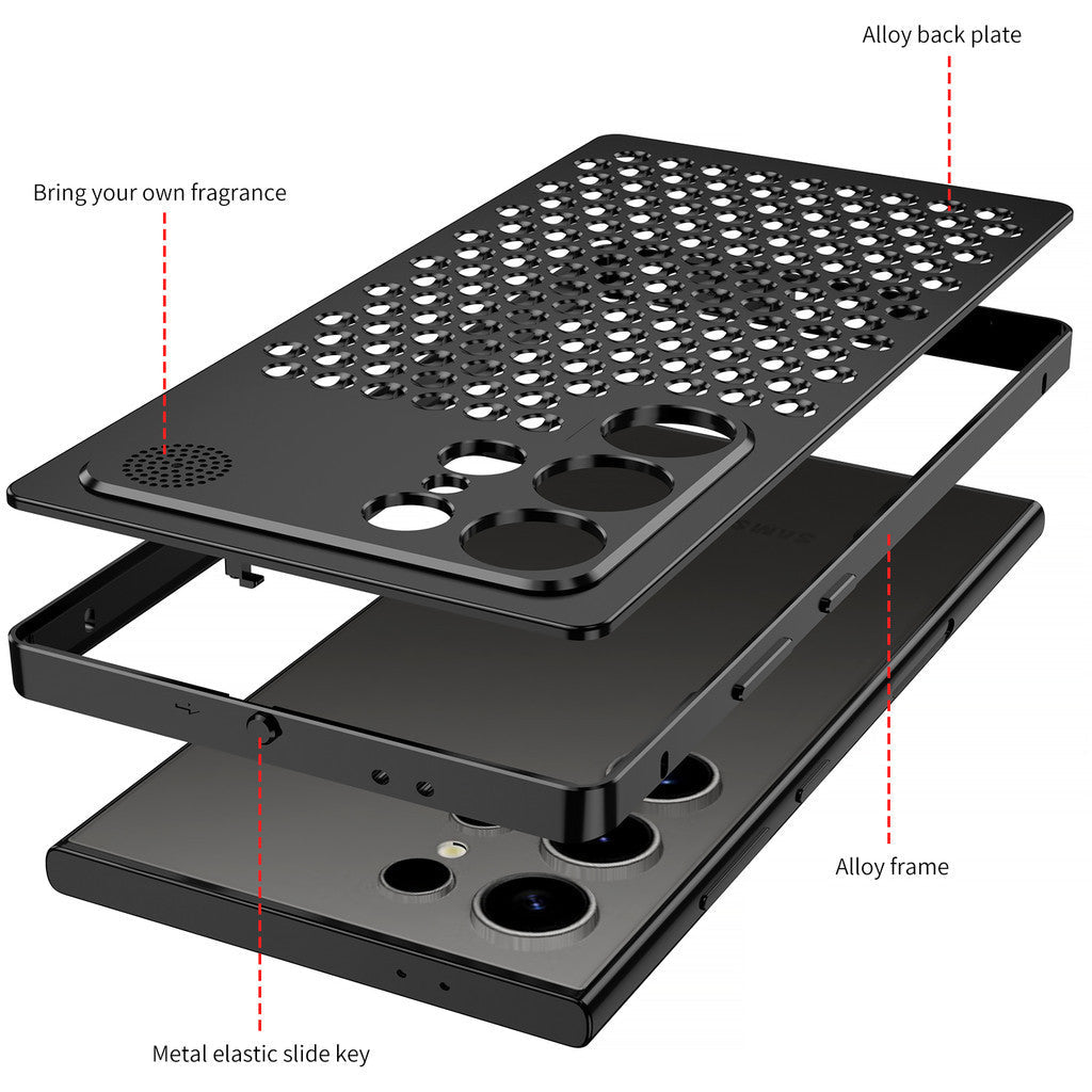 Metal Heat Dissipation Aromatherapy Aluminium Metal Case For Samsung Galaxy S24 Ultra - Black