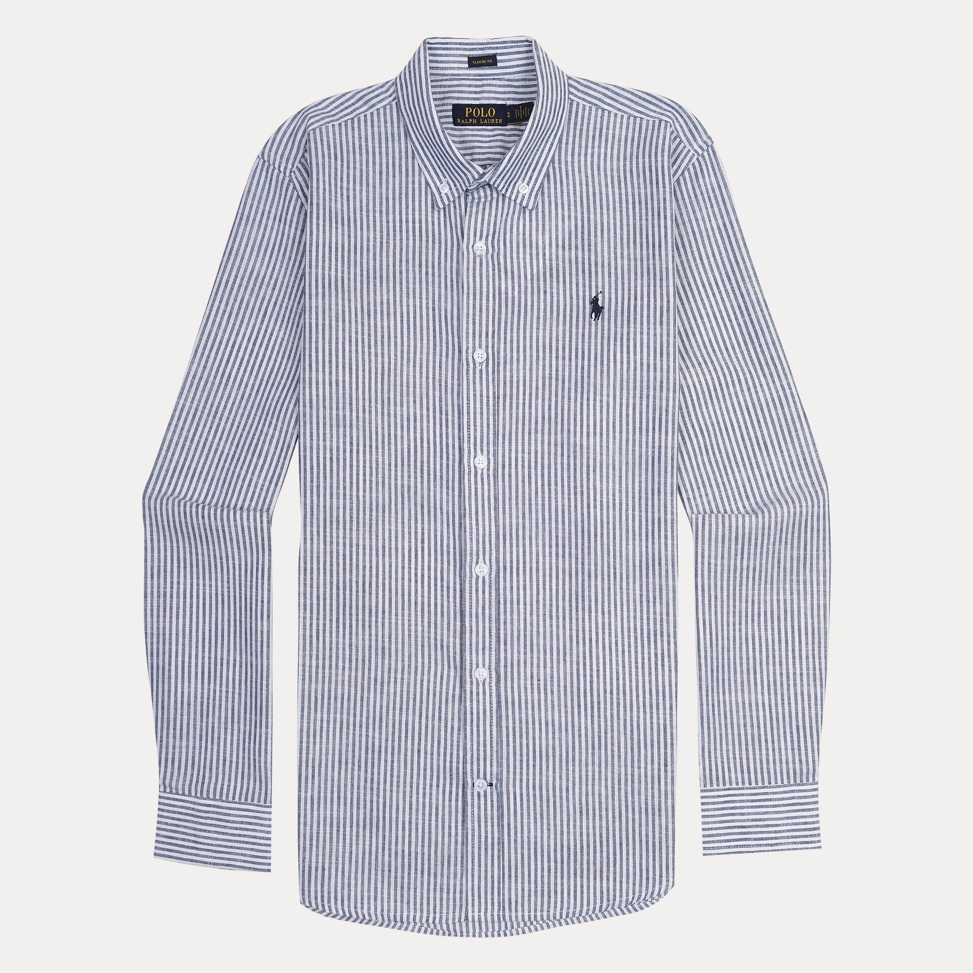 Polo Ralph Lauren Classic Fit Striped Linen Shirt in Nautical Blue