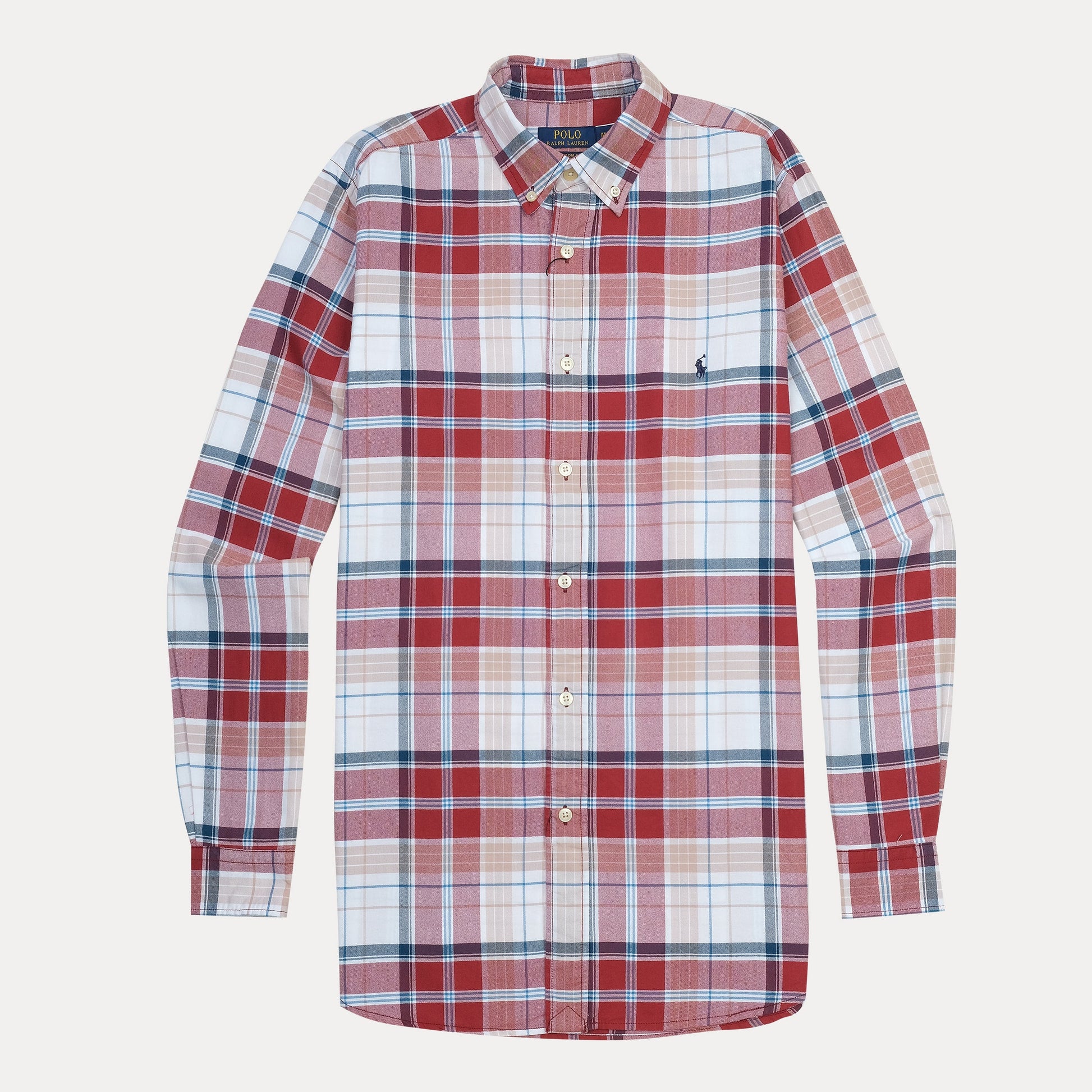 Polo Ralph Lauren Custom Fit Plaid Shirt in Rustic Crimson & Sky Blue