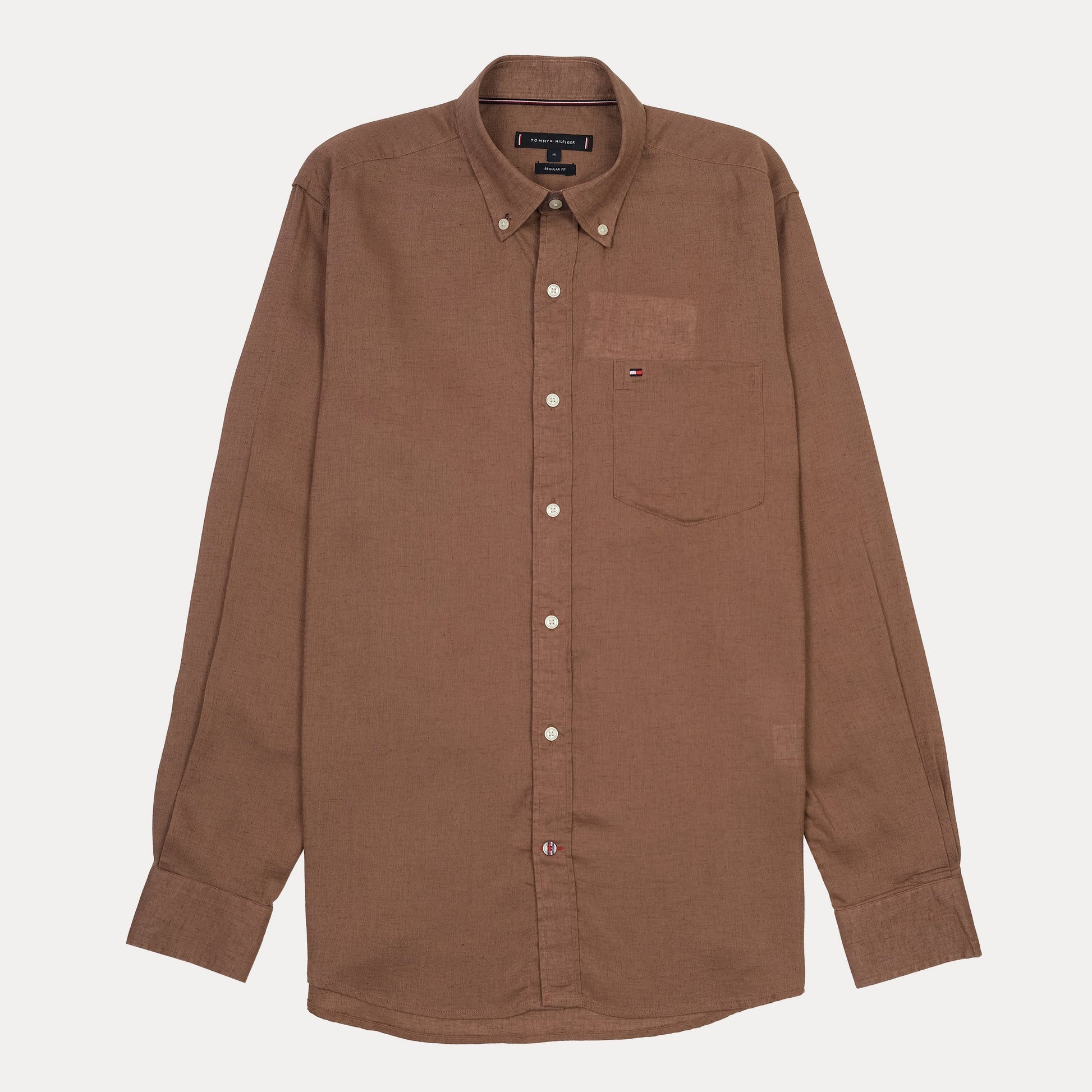 Tommy Hilfiger Rustic Cocoa Button-Up Linen Shirt