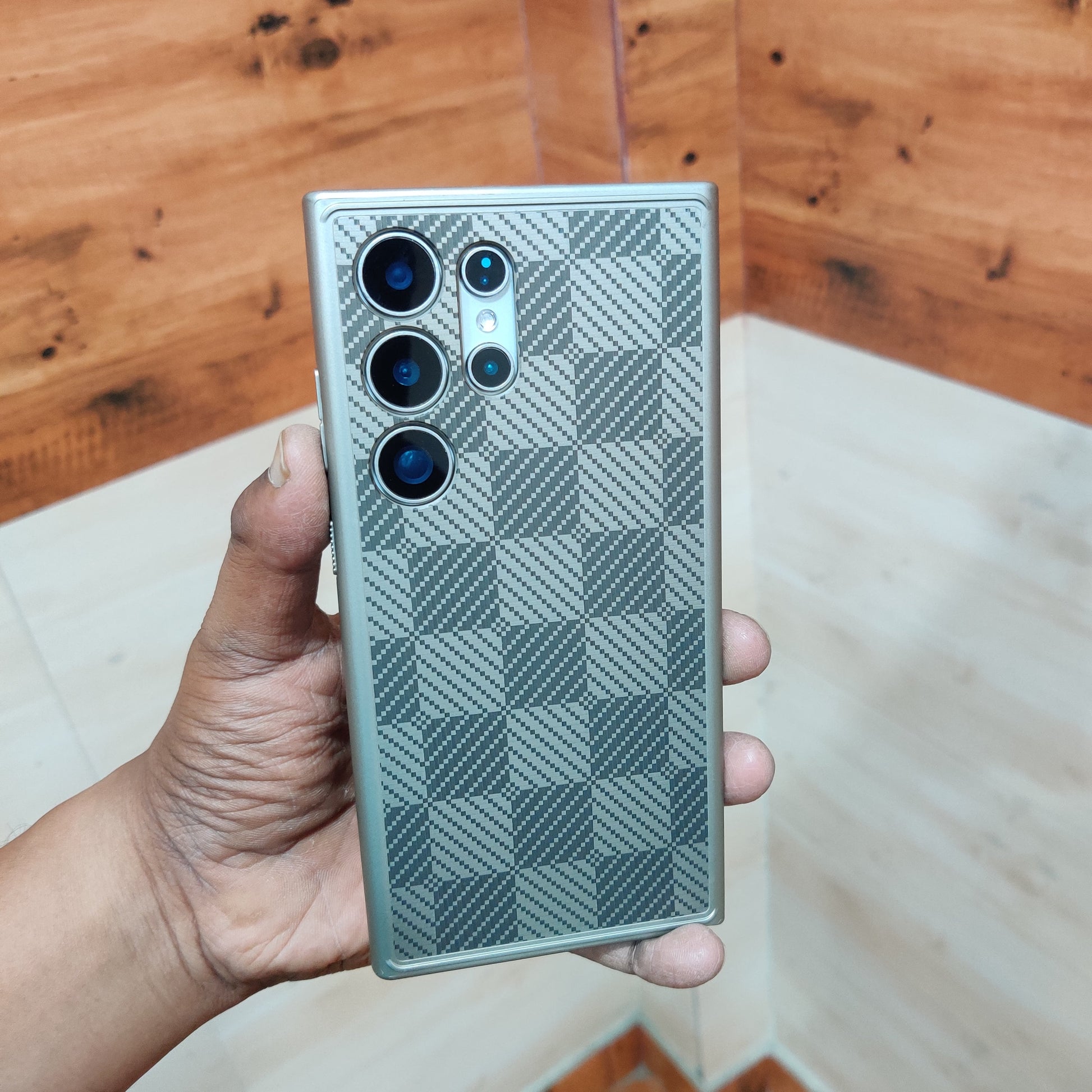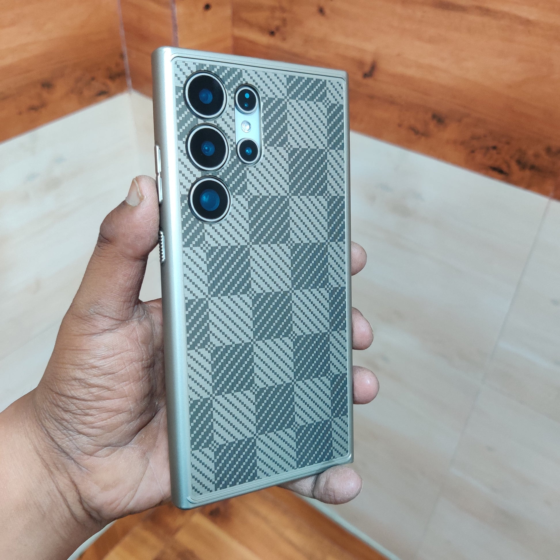Samsung Galaxy S24 Ultra Check Textured Heavy Shockproof Hybrid Case - Gray