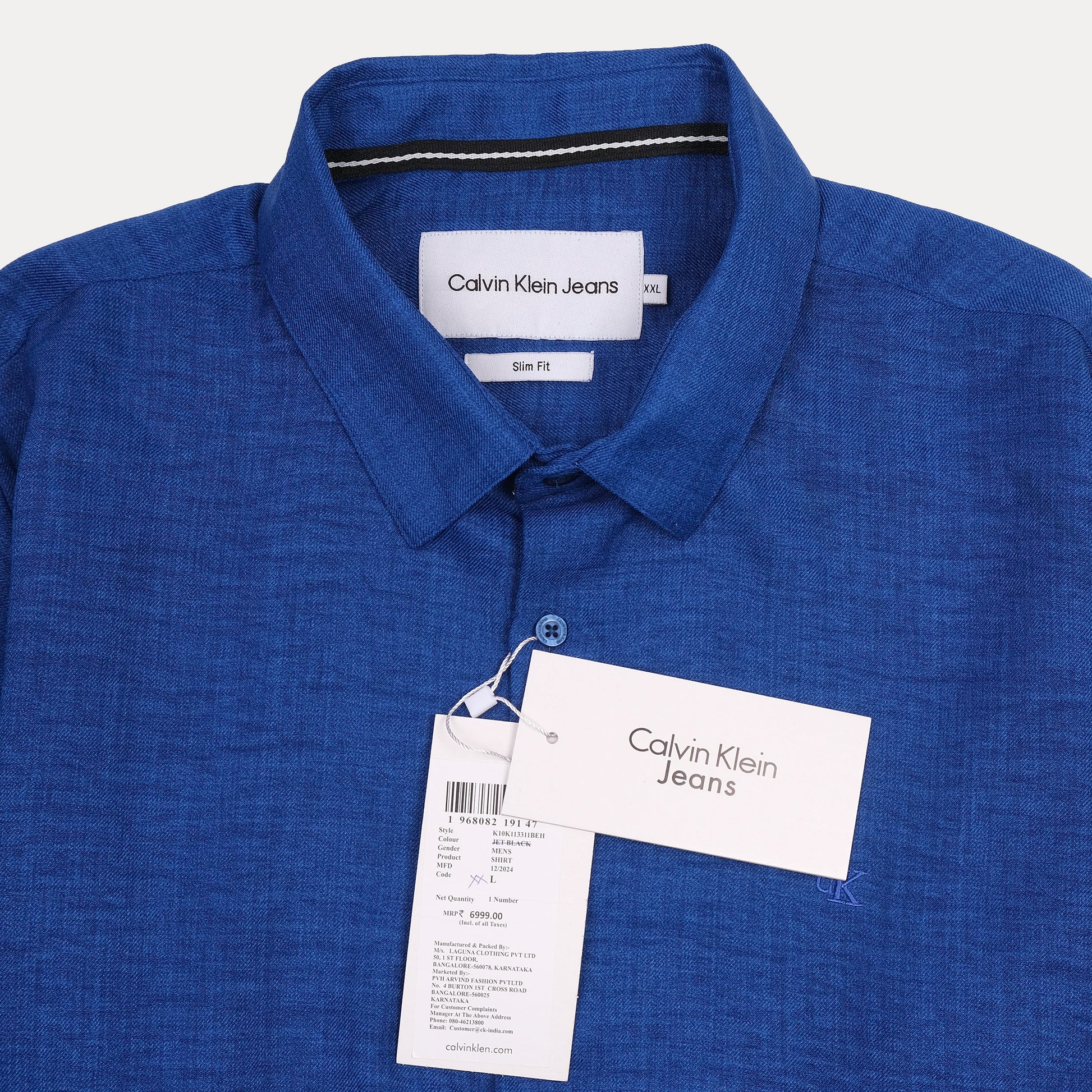 CALVIN KLEIN JEANS Skin Fit Textured Button-Up Shirt in Deep Blue